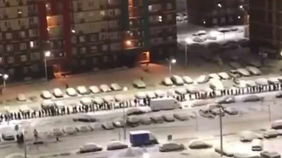 Ранее в этом жилом комплексе из-за непогоды людям также пришлось стоять с утра в больших очередях, чтобы попасть на автобусы и уехать на работу.
