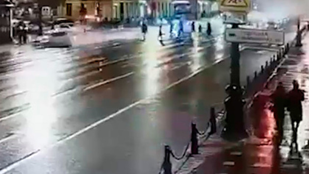 В Санкт-Петербурге на Невском проспекте водитель проехал на красный и сбил на зебре двоих пешеходов. Инцидент попал на видео, его публикует Telegram-канал SHOT.