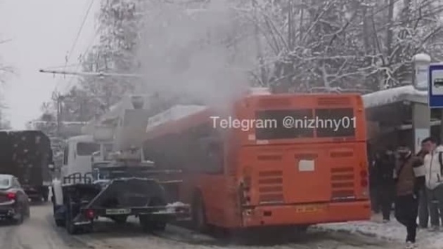 По предварительным данным, авария произошла на остановке у проходной Нижегородского машиностроительного завода. По информации канала, автомобиль-вышка задел автобус. В результате из задней части автобуса начал валить дым. Пассажиров высадили из транспортного средства.