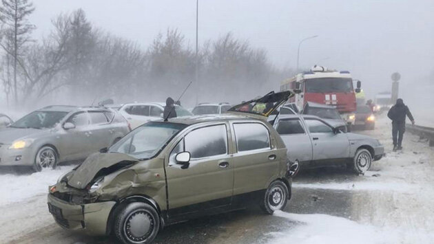 Из-за сильной метели и штормового ветра на трассе в Мордовии произошло крупное ДТП с участием сразу 24 автомобилей - в том числе пожарной машины.