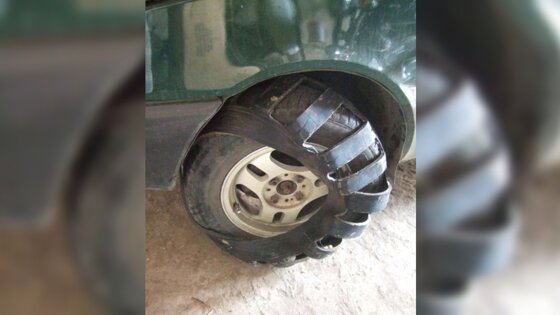 Как только установка будет завершена, основные шины нужно вновь накачать воздухом. В результате у вас получится нечто вроде двухслойной покрышки, с невероятно глубоким протектором. Если вы будете двигаться по снежной каше, колеса будут точно загребать снег, и вы не сможете застрять. Если сугробы очень глубокие, колеса можно немного спустить, под перемычки старых покрышек подкладываются кусочки швеллера. Таким образом вы превратите свое транспортное средство в настоящий трактор, который с легкостью преодолеет любое бездорожье на пути. С таким оснащением хоть в лес, хоть в горы, ничего не будет страшно.
