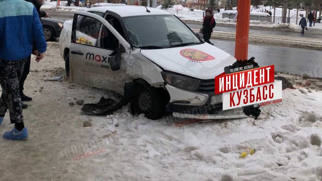 Такси после столкновения с автобусом возле кемеровского Парка Ангелов вылетело на тротуар