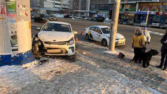 Два автомобиля Kia Rio не уступили друг другу дорогу на улице Челюскинцев. Один из таксистов сбил пешехода, стоящего на переходе. Пожилой мужчина скончался в больнице.