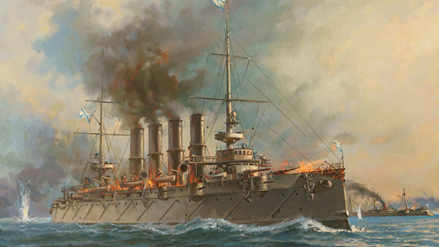 Крейсер «Варяг» принял вместе с канонерской лодкой «Кореец» неравный бой с японской эскадрой на рейде порта Чемульпо в 1904 году.