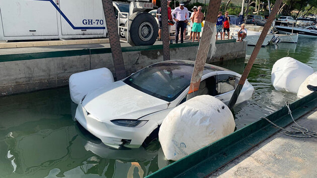 В Испании на одной из пристаней произошло странное ДТП: кроссовер Tesla Model X без видимых на то причин был отправлен под воду. С ролью подводного корабля электрокар не справился совсем, а вот изобразить бурлящий ведьмин котёл у него получилось вполне.