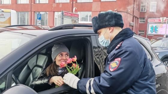 Женщины водят аккуратнее мужчин: в Новосибирске инспекторы ГИБДД поздравили автоледи с 8 Марта