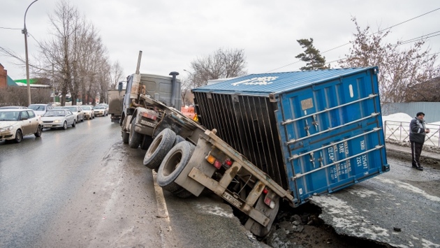 Причину провала грузовика на Немировича-Данченко выясняют коммунальщики в Новосибирске