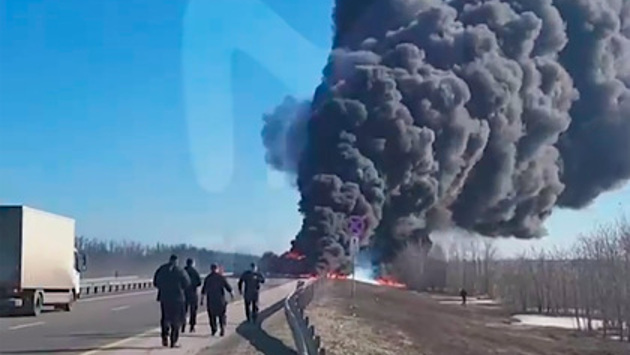 Горящий бензовоз на российской трассе сняли на видео