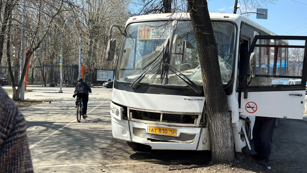 В Кемерове произошло серьезное ДТП: общественный транспорт врезался в дерево, стоящее недалеко от остановки.