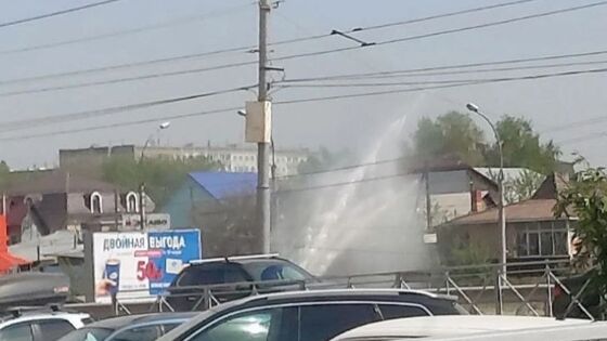 Фонтан из-под земли забил рядом с Ипподромской магистралью в Новосибирске