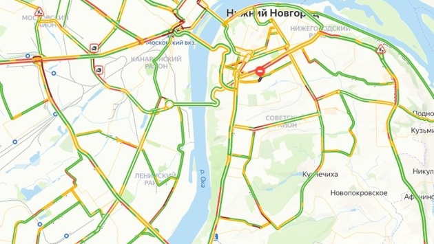 В центре города заторы наблюдаются на улицах Нижегородской, Белинского, Родионова и Нижне-Волжской набережной на подъезде к Канавинскому мосту.