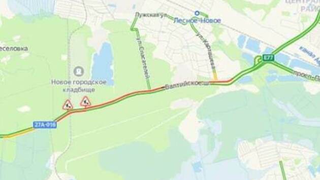 На балтийском шоссе днём в среду, 22 июня, из-за дорожных работ на двух участках образовалась пробка. Об этом говорят данные приложения «Яндекс.Карты».