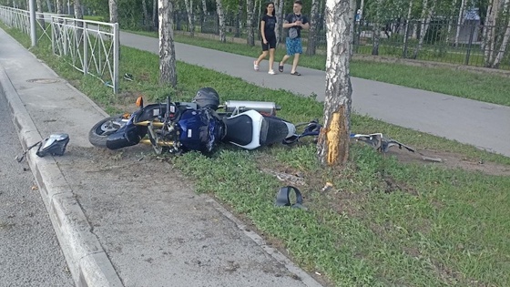 Страшная авария мотоциклиста и зеленого Peugeot в Новосибирске попала на видео