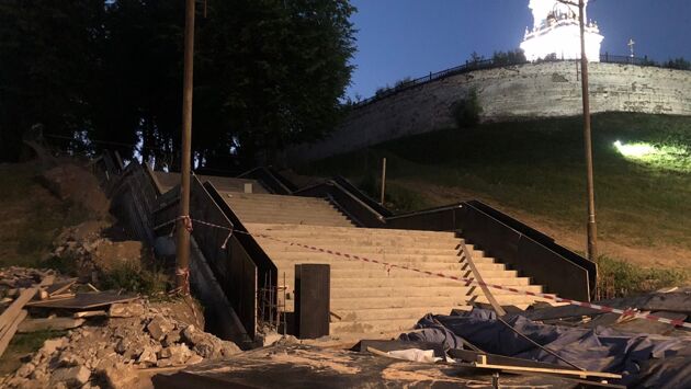 В Костроме реконструируют большую лестницу у цветочных часов на набережной