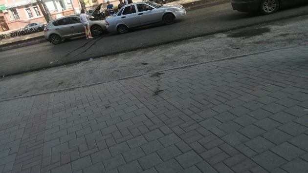 Вечером 10 июля в Кемерове на улице Кирова произошла авария: столкнулись две серые иномарки. Постоянный читатель VSE42.Ru поделился с редакциями фотографией с места происшествия.