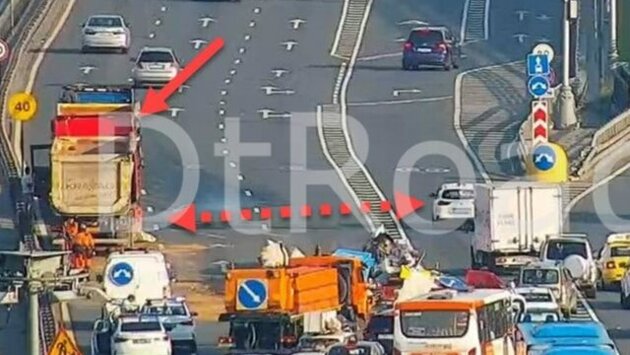 Грузовик наехал на место проведения дорожных работ на Ленинградском шоссе