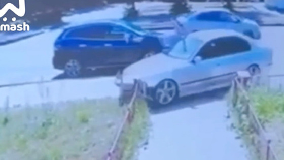 На появившихся кадрах видно, как российский подросток идет по тротуару и говорит по телефону. В какой-то момент юноша замечает, что на него несется автомобиль. Водитель буквально таранит пешехода, от удара подростка подбрасывает вверх. Автомобилист сносит ограждение и продолжает движение.