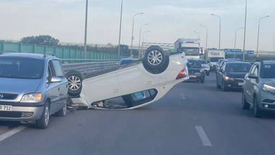 От удара автомобиль Renault Logan опрокинуло на крышу.
