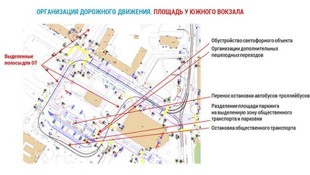 С запуском трамваев планируют ввести две выделенные полосы для общественного транспорта. Одна будет исключительно для автобусов и троллейбусов (от Багратиона до вокзала), на второй добавят трамваи (от Железнодорожной до проспекта Калинина).