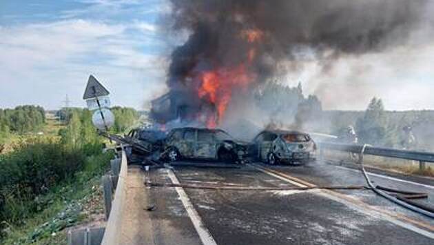 Грузовик столкнулся с семью машинами в Вологодской области. В результате ДТП автомобили загорелись, пострадали семь человек, еще один скончался. Об этом сообщил губернатор региона Олег Кувшинников в своем Telegram-канале.
