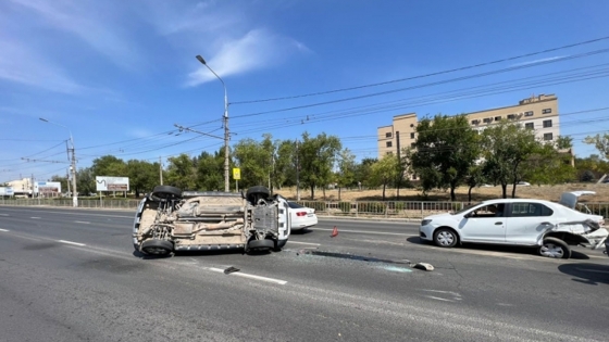 В Волгограде на видео попало массовое ДТП с перевернувшейся иномаркой