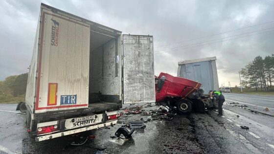 В Красноярском крае на трассе вблизи Боготола произошло жуткое ДТП с участием двух большегрузов и "Лады".