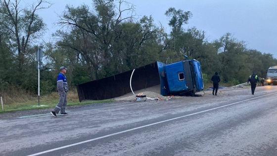 На Дону Камаз вылетел в кювет и перевернулся