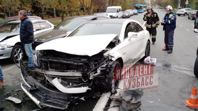 Очевидцы рассказали, что в воскресенье в областном центре Кузбасса столкнулись сразу несколько автомобилей. Фото с места происшествия появились в соцсетях.