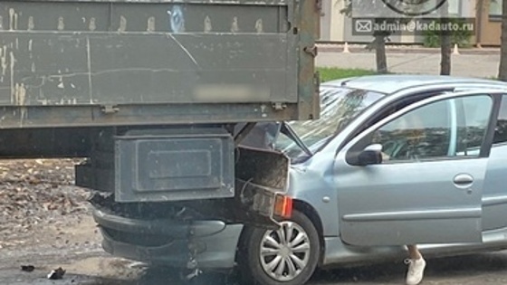 ДТП произошло в четверг, 6 октября. Капот Peugeot оказался зажат под фурой. Подробности происшествия пока неизвестны. По предварительной информации, женщина-водитель легковушки не пострадала.