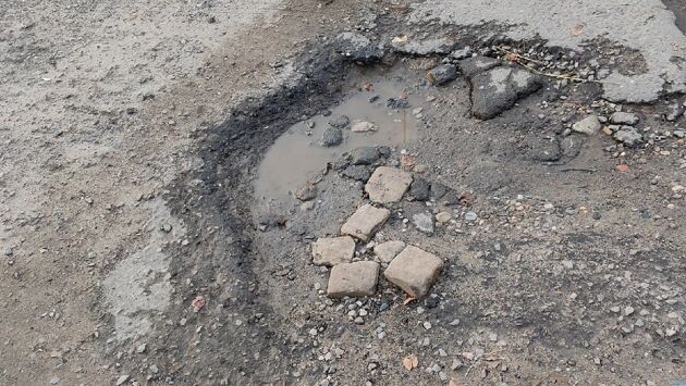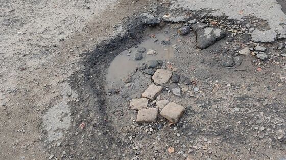 Огромную яму на дороге в Костроме пообещали залатать как-нибудь потом