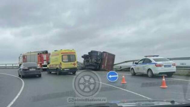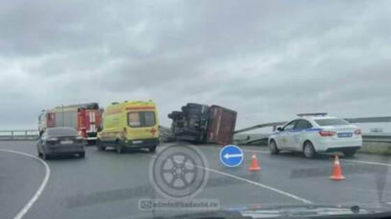ДТП произошло на развороте над Приморским кольцом в сторону Орловки в пятницу, 11 ноября. Калининградка Кристина ехала следом за грузовиком. Поблизости не было других машин. По словам собеседницы «Клопс», фура ехала с допустимой в том месте скоростью, как вдруг на повороте большегруз повело в сторону и он упал.