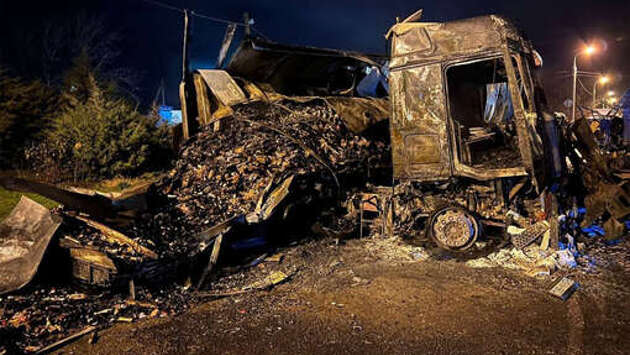 Фура с алкоголем сгорела после лобового столкновения с зерновозом в станице Воронежской