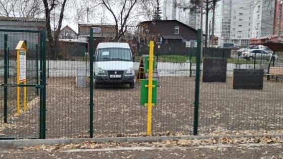В Красноярске площадку для выгула собак огородили вокруг припаркованного автомобиля