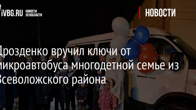 Дрозденко вручил ключи от микроавтобуса многодетной семье из Всеволожского района