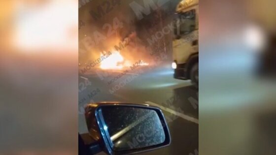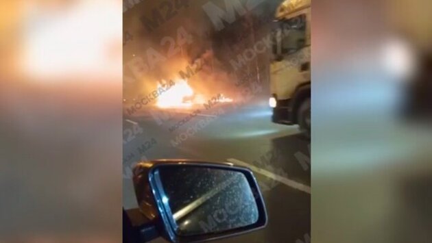 Легковая машина врезалась в грузовик и загорелась на 101-м км МКАД