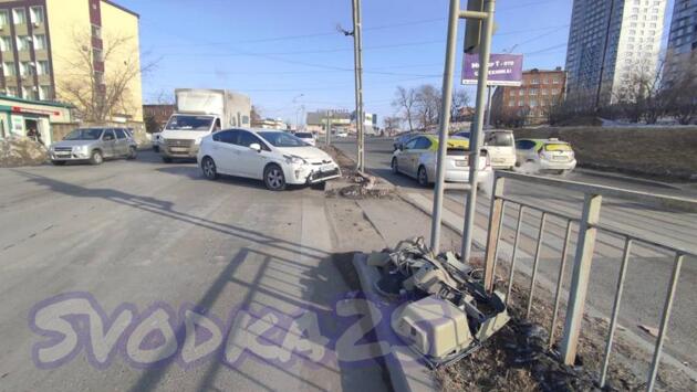 В воскресенье, 29 января, водитель за рулем иномарки Toyota Prius протаранил светофор во Владивостоке в районе остановки «Баляева», сообщает PRIMPRESS со ссылкой на Telegram-канал Svodka25.