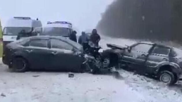 В 7:50 водитель автомобиля «Нива» не справился с управлением, так как двигался по скользкой дороге. Он выехал на встречную полосу, там он столкнулся там с «Фордом».