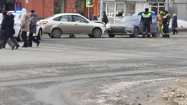 В Центральном районе Кемерова столкнулись два легковых автомобиля. Очевидцы поделились с редакцией VSE42.Ru кадрами с места аварии.