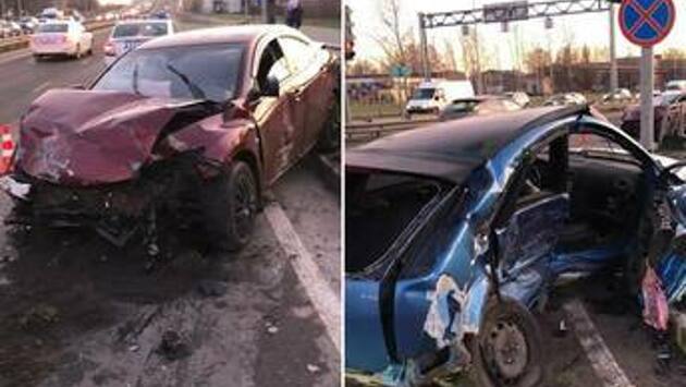 В полиции показали фото с места аварии на пересечении и Ялтинской и Восточной эстакады, где разбились 2 машины