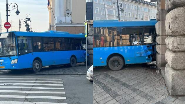 Автобус, по информации специалистов управления транспорта, совершил столкновение со зданием Арбитражного суда, расположенным на перекрестке Океанского проспекта и улицы Адмирала Фокина. Это произошло по вине водителя.