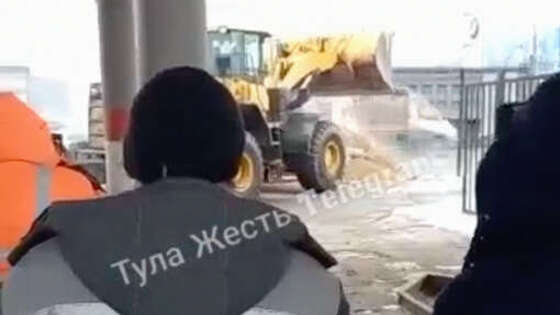 В Туле трактор засыпал песком загоревшийся автомобиль