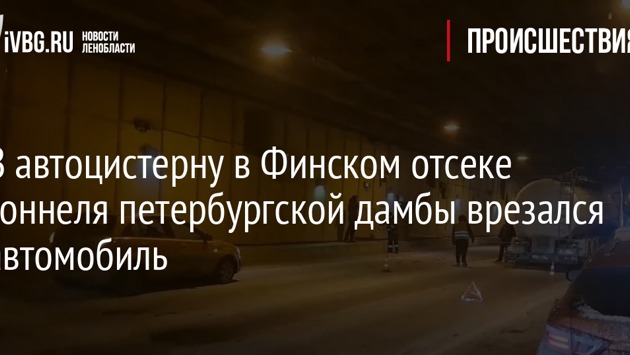 В автоцистерну в Финском отсеке тоннеля петербургской дамбы врезался автомобиль