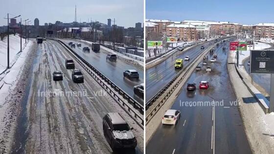 Некрасовский путепровод после весеннего снегопада стал напоминать больше реку, чем дорогу, сообщает PRIMPRESS.