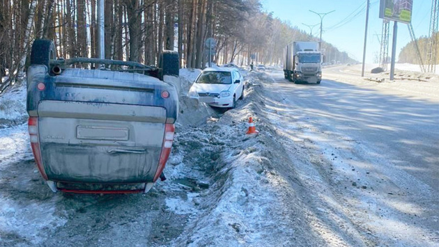 , женщина за рулем японского кроссовера наехала на снежный вал, в результате чего машина опрокинулась на крышу. В результате ДТП пострадали водитель «Хонды» и пассажир – девочка 2013 года рождения.