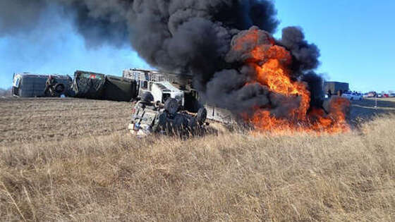 Автовоз с УАЗами сгорел после ДТП в Ульяновской области