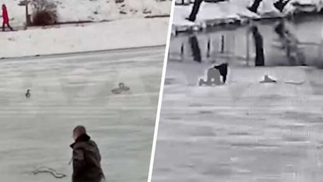 В Кирове сотрудник Росгвардии увидел, что мужчина провалился под лед. Ему удалось спасти местного жителя, сообщается в Telegram-канале Baza. По данным источника, местный житель вышел на тонкий лед. Как видно на кадрах, он проверял поверхность впереди себя с помощью длинной палки, однако это не помогло ему избежать падения в воду. Во время инцидента неподалеку проходил сотрудник Росгвардии. Он увидел тонущего человека, поэтому решил помочь. Мужчина аккуратно подполз к потерпевшему и вытащил местного жителя из образовавшейся проруби. После этого росгвардеец также аккуратно пополз к берегу, а местный житель решил, что падение ему больше не грозит, поэтому снова пошел по льду. Ранее сообщалось, что в Нижнем Тагиле мальчик едва не утонул во время игры на льду. Потерпевший был в компании друзей, которые сначала испугались и убежали, а затем вернулись и вытащили товарища.