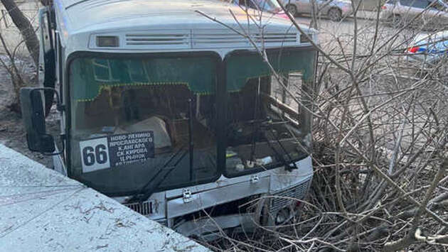 В Иркутске маршрутный автобус врезался в дом после столкновения с пожарной машиной