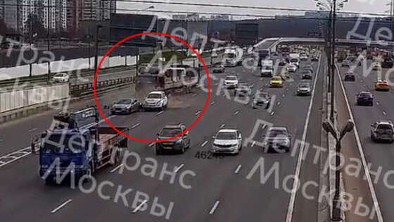 Судя по видео, два легковых автомобиля стояли в правой полосе, когда в них въехала грузовая машина. От удара одна легковушка отлетела в отбойник, а вторая проехала вперед несколько десятков метров. Информация о пострадавших уточняется. Движение в районе аварии затруднено.
