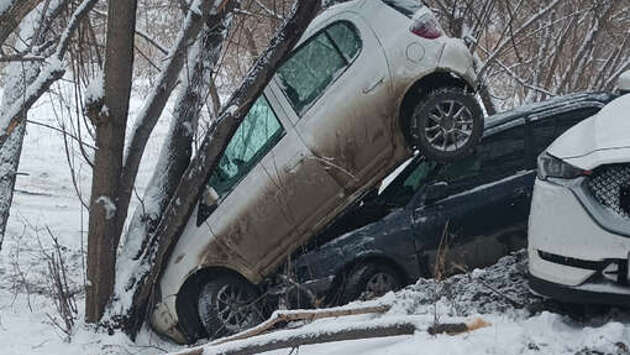 В Барнауле две машины съехали в кювет и врезались в одно и то же дерево