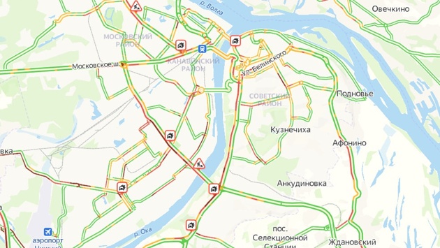 Девятибалльные пробки сковали Нижний Новгород вечером 26 мая